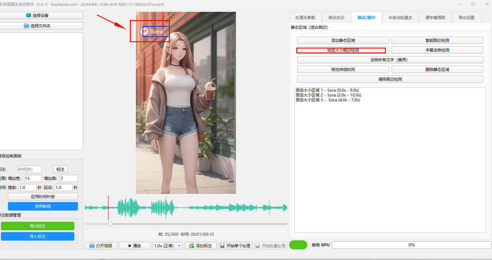 未分类 10月10日 编辑 buyitan 取消关注 关注 私信 Sora视频最近很收到关注,不过上面自带水印很多人不知道如何去除,今天来介绍布衣视频去水印如何去除: 我们使用静态/跳印 固定大小跳印检测,之后划区选择水印,然后就会自动检测水印路径。我们直接选择AI修复就可以。 声明:本站所有文章,如无特殊说明或标注,均为本站原创发布。任何个人或组织,在未征得本站同意时,禁止复制、盗用、采集、发布本站内容到任何网站、书籍等各类媒体平台。如若本站内容侵犯了原著者的合法权益,可联系我们进行处理。 给TA打赏 共{{data.count}}人 人已打赏